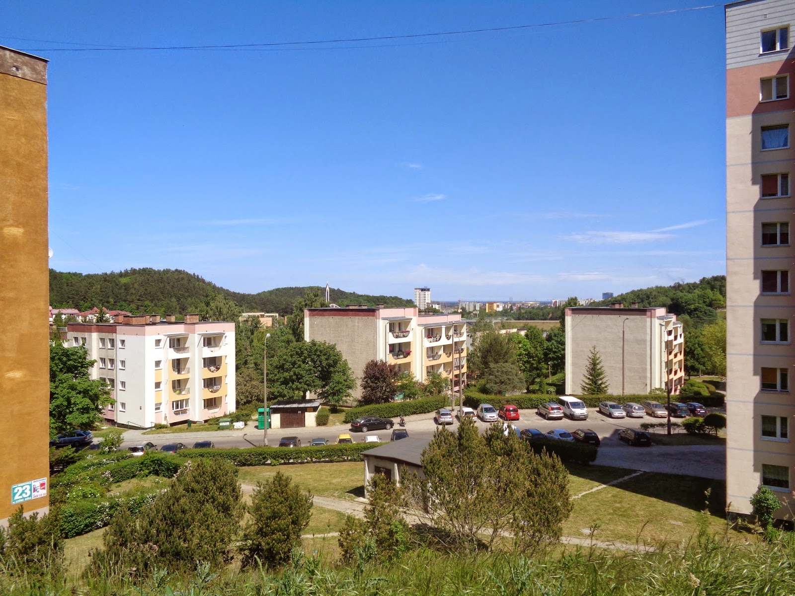 Przed oczyma zaś ukazał się przepiękny krajobraz wzgórz porośniętych gęsto lasem, po prawej stronie wyrastające bloki Niedźwiednika, a nieco bardziej po lewej zabudowania całego Brętowa, w tym Matemblewa.