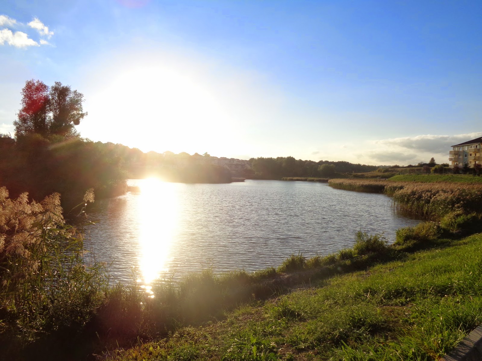 W pobliżu znajduje się kilka kolejnych zbiorników retencyjnych, chociażby największy w Gdańsku – “Świętokrzyska nr 2” o powierzchni ponad 7 ha ! Główne miejsce rekreacji, spacerów, wędkowania, biegania czy np jeżdżenia rowerem dla okolicznych mieszkańców. Dookoła jest chodnik, są ławki i dalej również plac zabaw oraz siłownia pod chmurką. Jedziemy więc nad wodą, miedzy trzcina i widocznymi za woda blokami wygląda słonko dające genialne wrażenie. W miejscu, gdzie Potok Oruński wpada do stawu, spojrzałem na okolice, pięknie to razem wygląda.