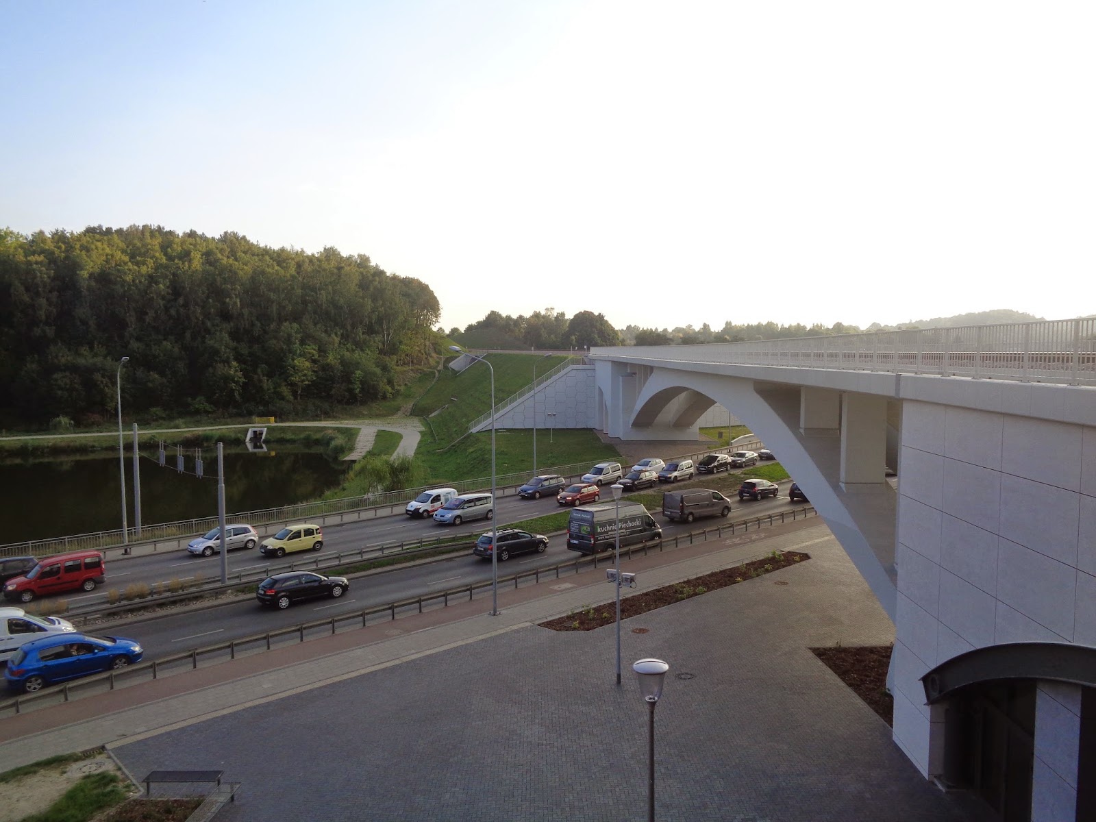 Zaparkowałem rower i aby wejść do góry, wybieram schody. Po pierwsze zwracam uwagę na opisany już we wstępie wiadukt, pod którym przejeżdżają setki aut. Wiadukt stał się niejako bramą do miasta, na pewno jest dużo ładniej niż jeszcze kilka lat temu.
