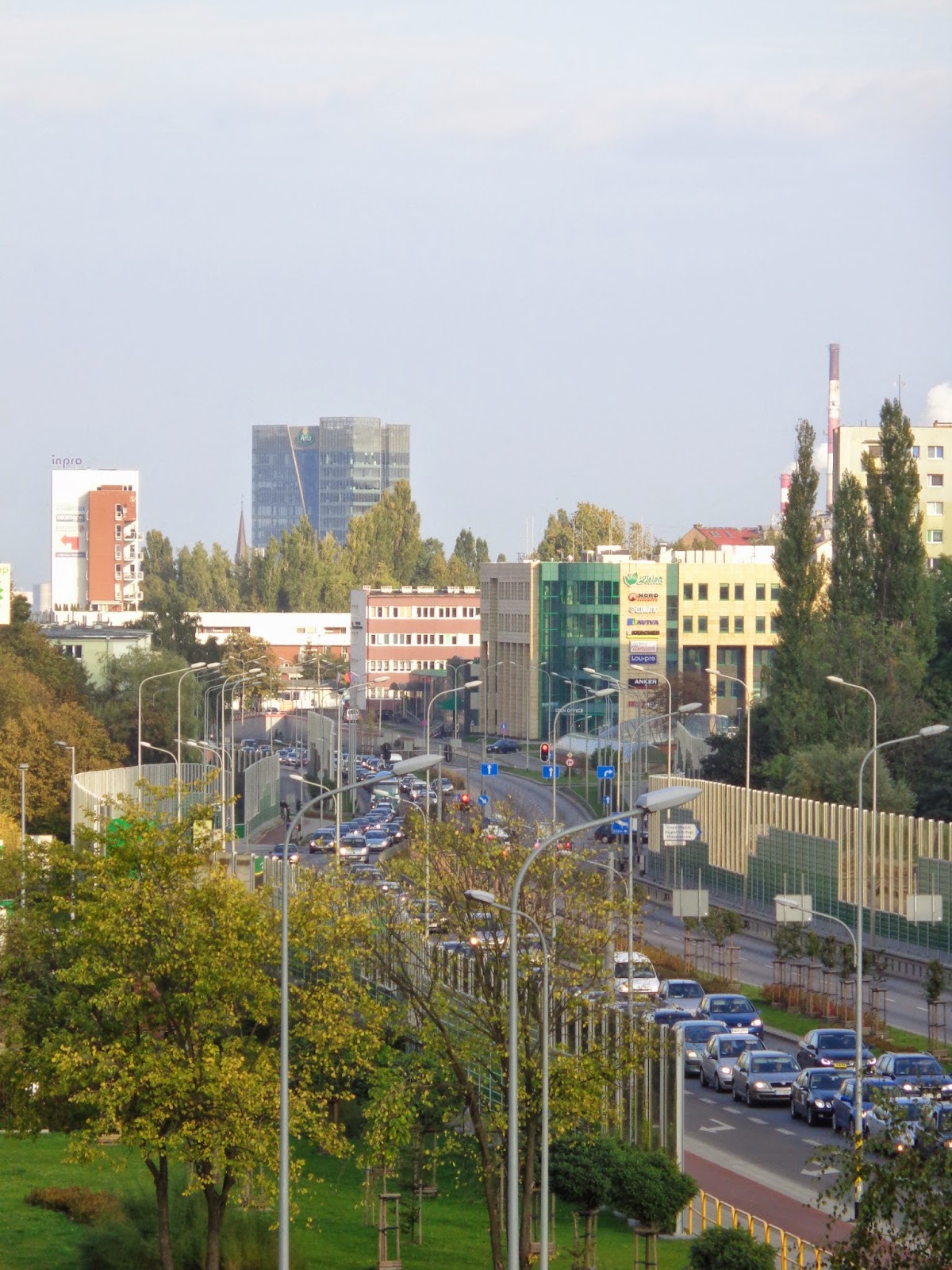 Spoglądam w prawo i muszę przyznać, że rzadko tak jak tutaj wrażenie robi na mnie kilku pasmowa ulica. W okolicy Ronda De la Salle mnóstwo aut, ale nie to mi się podoba. Imponują zielone wzgórza “otulające” niejako ten miejski zgiełk. Tuż obok majaczą bloki Niedźwiednika, jakby przyglądając się temu, co dzieje się na dole.