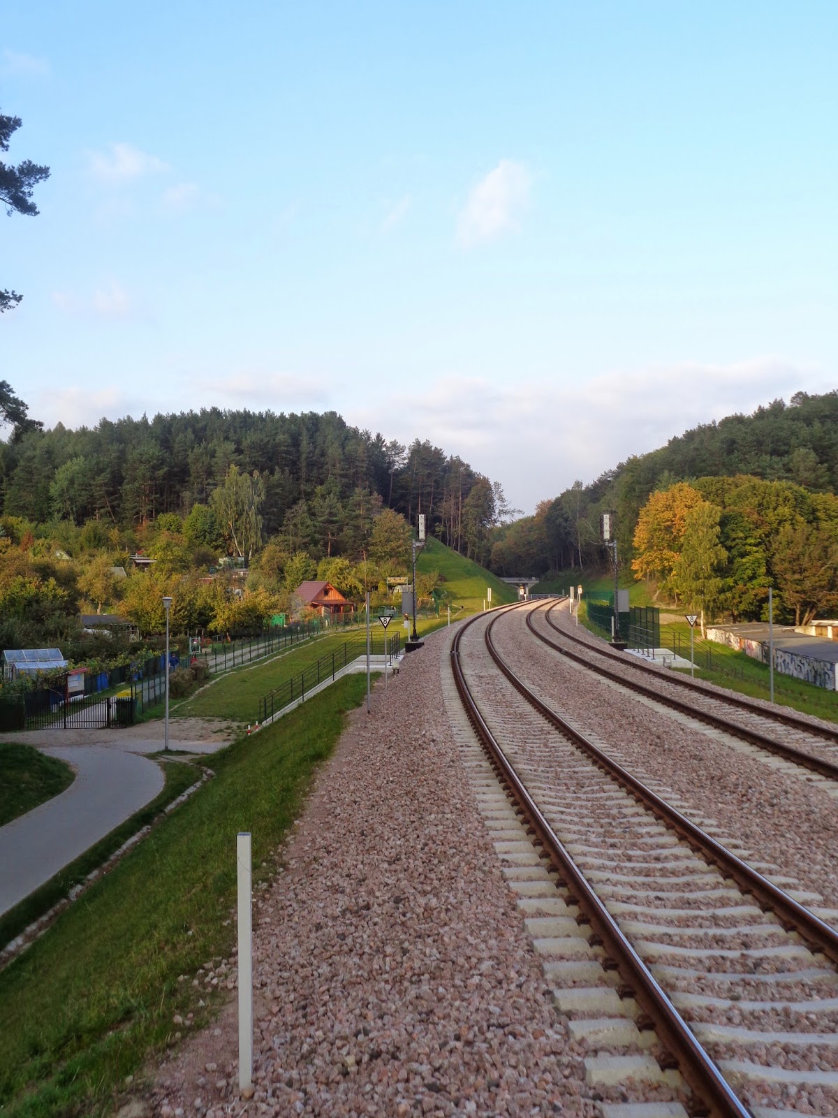 Wracam i przechodzę na drugi peron. Tutaj przede wszystkim genialnie prezentuje się blokowisko na Niedźwiedniku i okoliczne, zielone wzgórza. Bliżej również las, górki, zapisuje sobie kolejne miejsca do listy – “do odwiedzenia”. Oddalam się w stronę końca peronu, tam gdzie kawałek dalej mieszczą się rodzinne ogródki działkowe “Niedźwiednik”. Oglądam torowisko aż po Mostek “Weisera”, obracam się i powoli spacerkiem udaję się do zejścia.