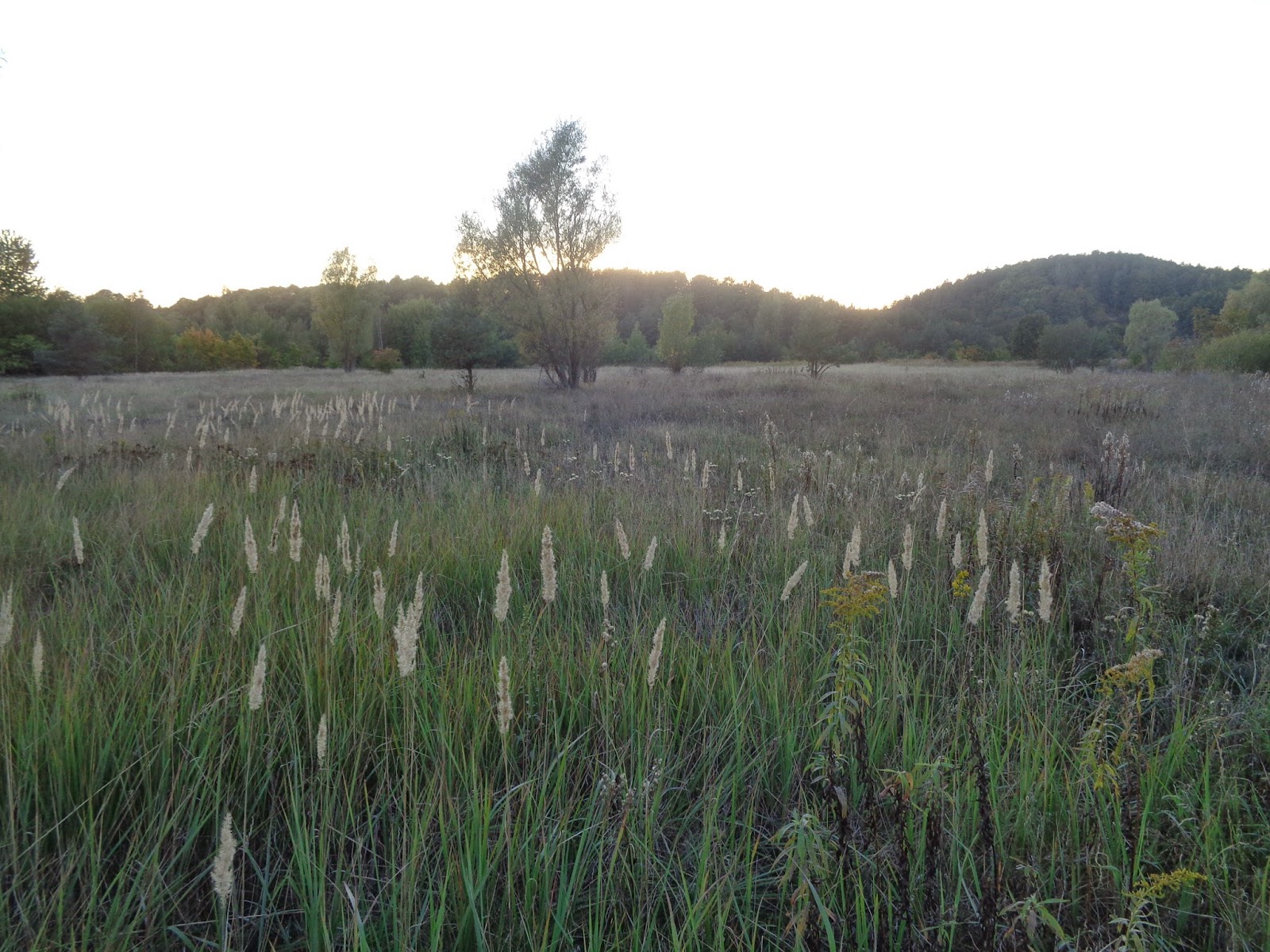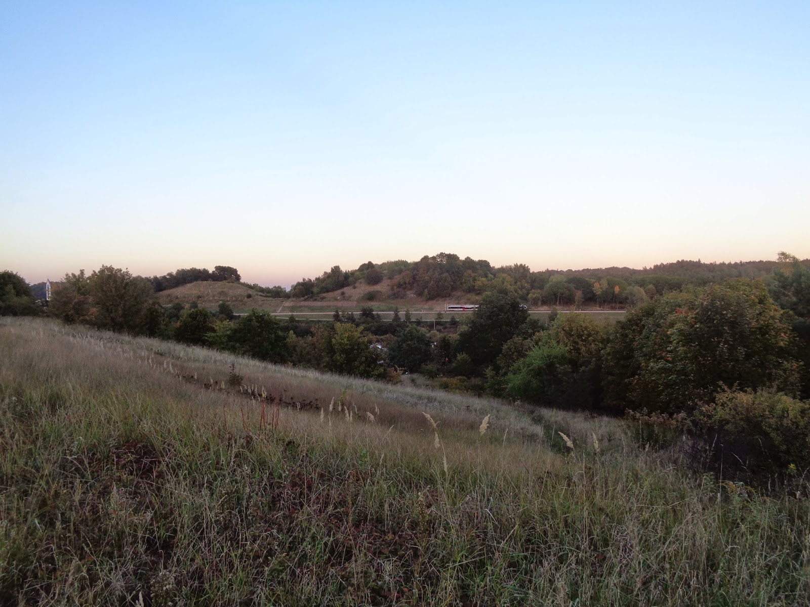 Za rondem De la Salle skręciłem w dziki teren, jeszcze przed lasem. Wiedziałem, że muszę kierować się bardziej w stronę ulicy Potokowej. Zszedłem z roweru i dalej go prowadziłem. Mknąłem w dość wysokiej roślinności, pod górkę, by po chwili dotrzeć do dość sporej polany. Oglądam się w stronę Niedźwiednika a tam nad ulicą Słowackiego wznosi się spore wzgórze (swoja droga trzeba tam się udać ;)) a obok blokowisko. Idziemy (ja i rower) nieco dalej, super wygląda owa polana a za nią już lesiste wzgórza. No i jestem, to najpewniej to miejsce, które widziałem z Byczego Wzgórza, które to wzgórze dokładnie widzę, obok kolejne a poniżej sunie szynobus PKM-ki. Pojechałem dalej i w sumie kierowałem się instynktownie aż do ulicy Potokowej. Stąd, przez Piecki-Migowo i Siedlce dotarłem do domku 🙂