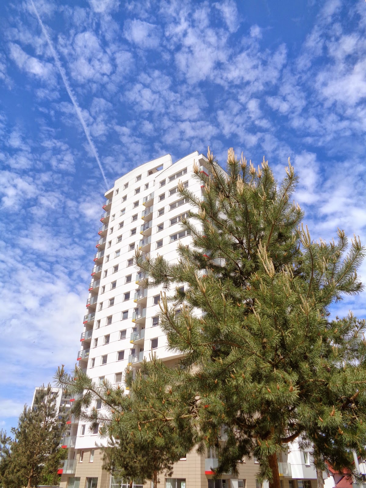 W Gdańsku budynków wysokich na co najmniej 50 metrów jest 30 z hakiem. To jeden z nich. Najpierw zbudowano dwa, obecnie stoją już dwa kolejne i są wykańczane. Łącznie ma ich być osiem. Na ten rok mam plany robienia zdjęć z klatek schodowych… A gdyby tak ktoś wpuścił mnie do mieszkania na ostatnim piętrze tego wieżowca od strony Bałtyku… ? 😀