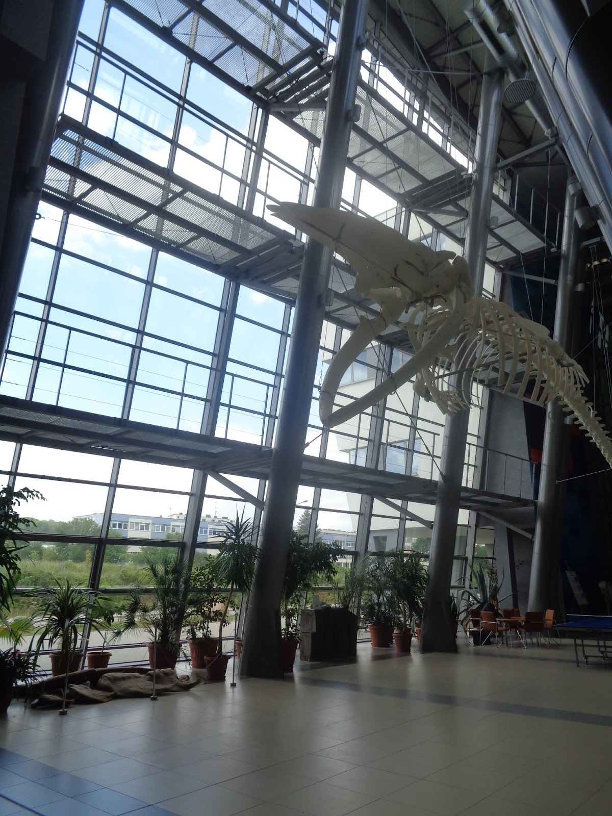 To podwieszony kilka metrów nad posadzką szkielet finwala! To jedyny taki eksponat w Polsce, mierzy kilkanaście metrów długości, choć najdłuższe osobniki mierzą nawet 20-kilka metrów. Płetwal zwyczajny, bo również tak się nazywa, to drugie co do wielkości zwierzę na świecie.