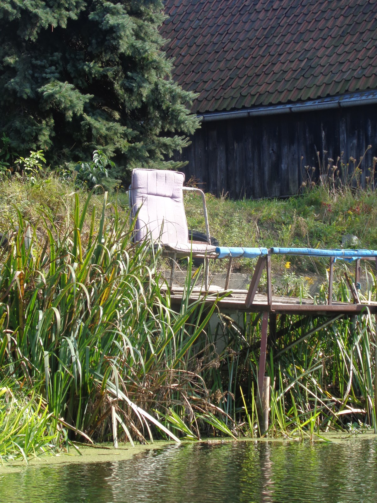 Popłynęliśmy Motławą przy Olszynce i Oruni. Tutaj bardzo podobały mi się różnorakie pomosty samoróbki, niektóre wyposażone w krzesła. Nadają fajnego, sielskiego klimatu.