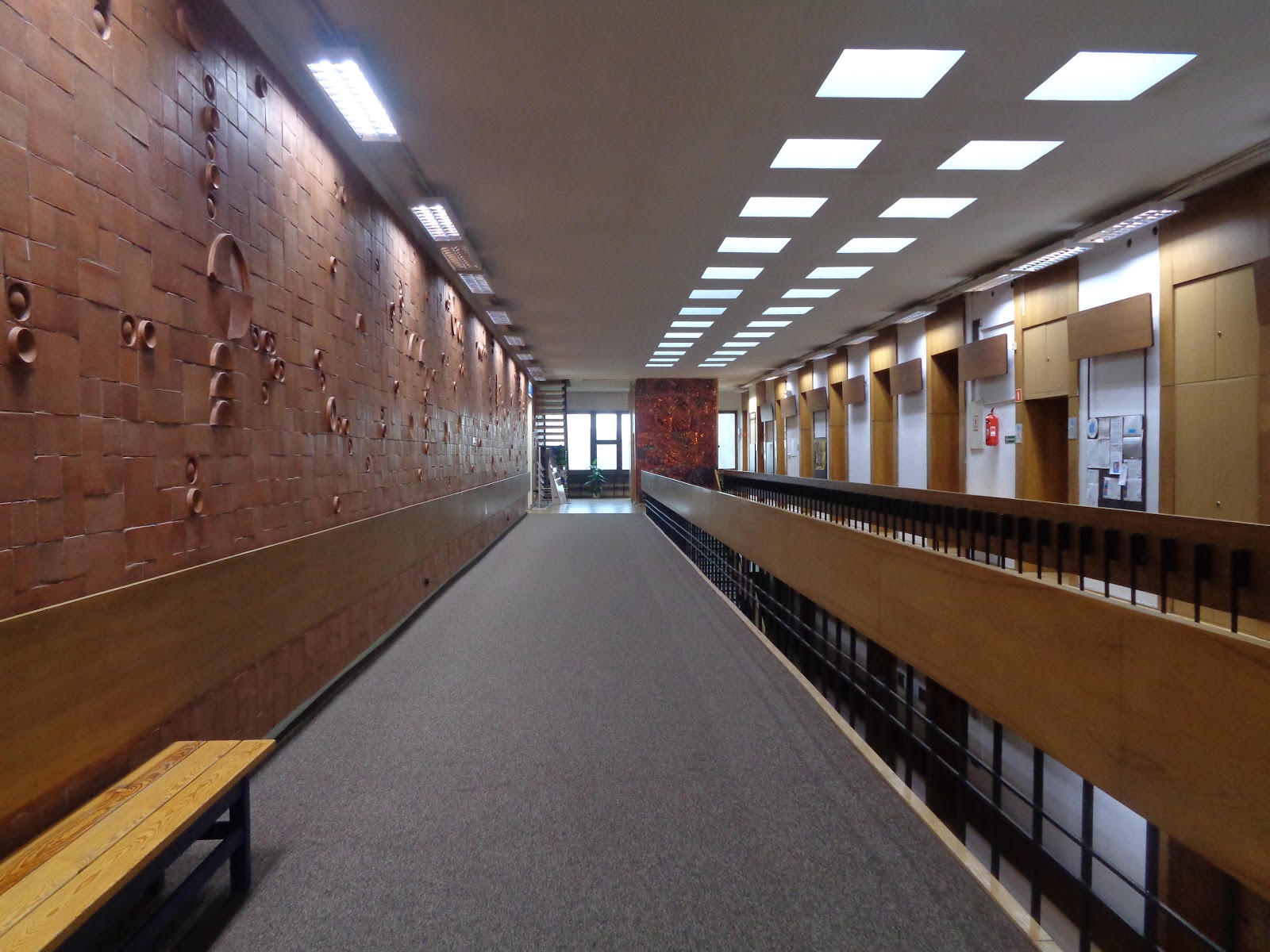 Zwiedzanie zacząłem od budynku NOT-u. Przykład modernistycznej architektury, wzniesionej w latach 70-tych. Wielu z nas może się kojarzyć jedynie z wyglądem zewnętrznym, a warto zajrzeć do środka. Moją uwagę zwróciły schody biegnące przez całą długość budynku, wcześniej podobnych nie widziałem. Ceramiczne ściany proj. Andrzeja Trzaski oraz modernistyczna mozaika Janiny Palińskiej, dodają wnętrzu charakteru.