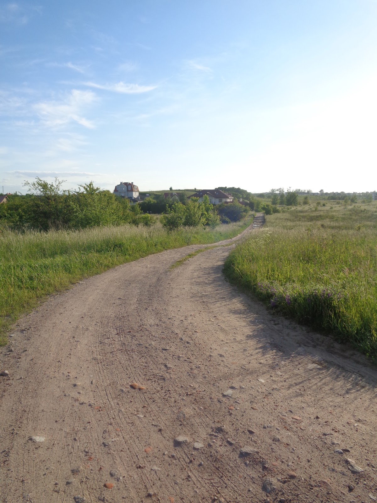 Hałas niknął, a my udaliśmy się na ul. Jagatowską. Ciężko nazwać to ulicą, raczej polną drogą, aczkolwiek miejsce wspaniałe. Podeszliśmy w górę, za nami w dole Południowa Obwodnica Gdańska, zaś za nią wysokie wzgórze.