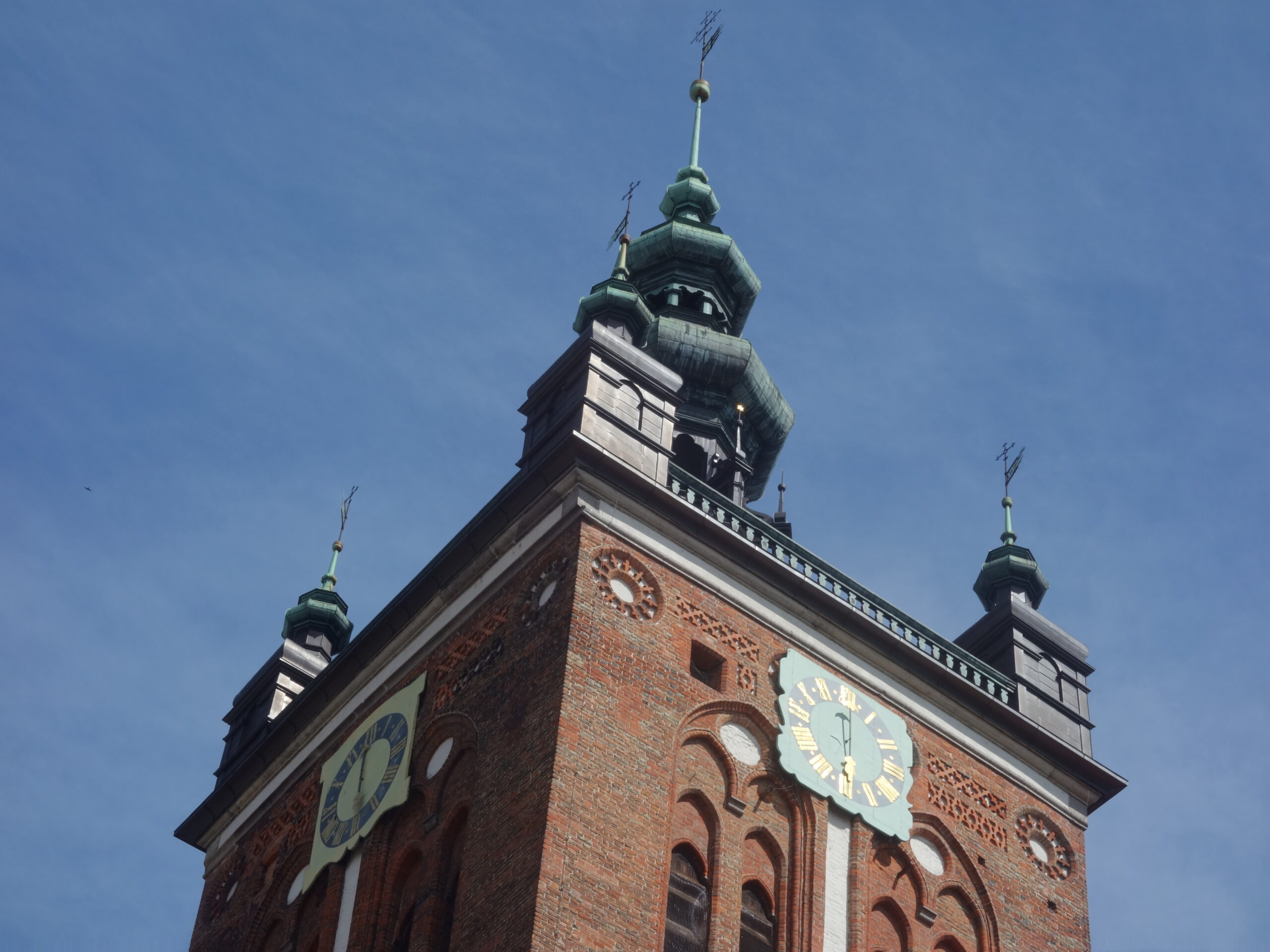 Smukła wieża zwieńczona wspaniałym hełmem przez wielu uważana jest za arcydzieło. To ona góruje nad Długim Targiem i Długą oraz współtworzy WSPANIAŁĄ panoramę miasta. Wieża Ratusza Głównego Miasta w Gdańsku, licząc do samej głowy króla Zygmunta Augusta, liczy sobie – w zależności od źródła – między 81,5 a ponad 83 metry. Tak czy inaczej to najwyższa wieża ratuszowa w Polsce.