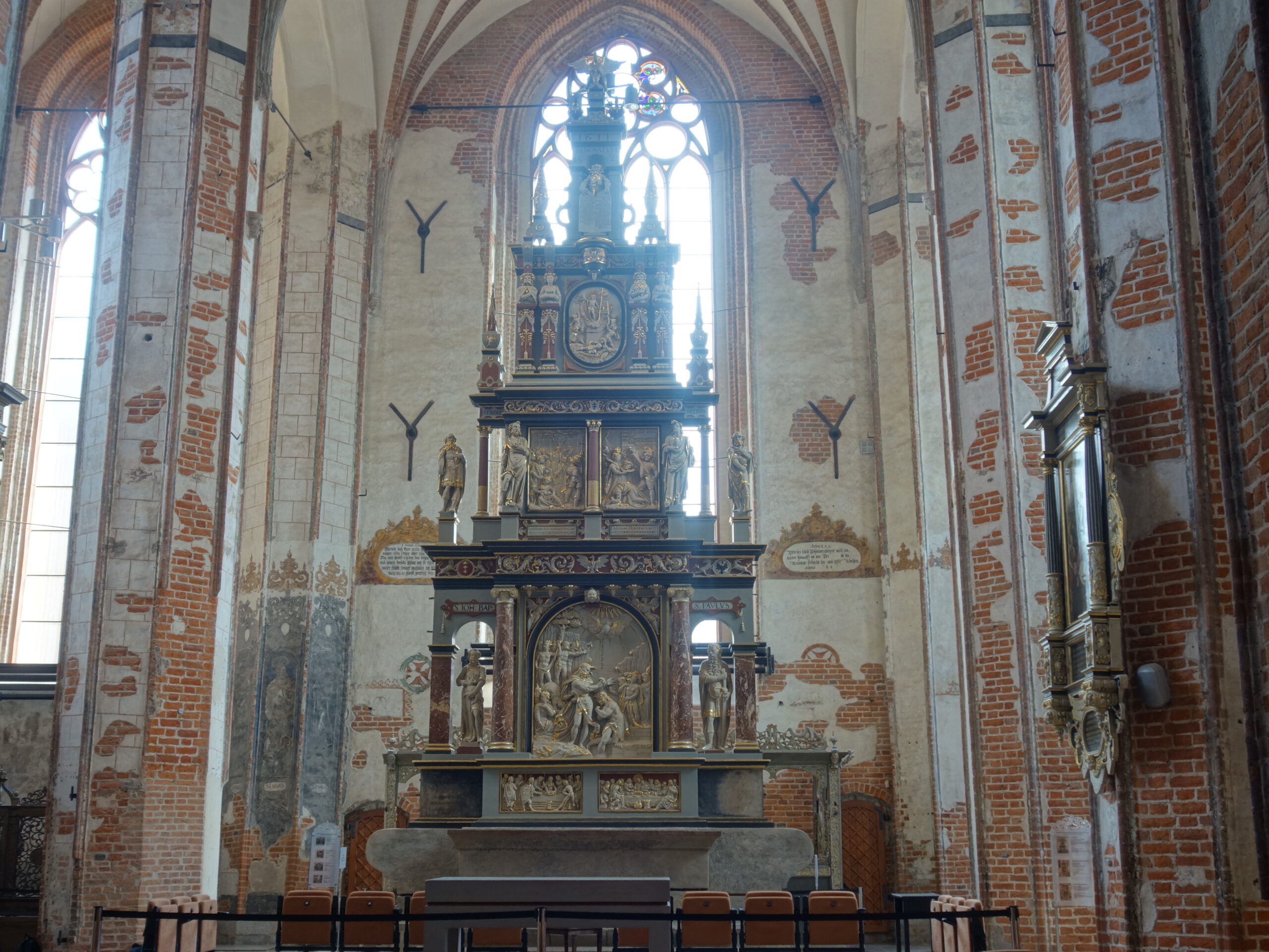 Ołtarz w Kościele Św. Jana z przełomu XVI i XVII wieku autorstwa Abrahama van den Blocke to wybitne dzieło. Wykonany z piaskowca gotlandzkiego, marmuru czerwonego oraz szarego wapienia zbitego, w całości polichromowany, robi wrażenie mnogością detali w surowym wnętrzu świątyni. Ołtarz o wysokości 12 metrów i szerokości ponad 5 metrów jest największym w Polsce renesansowym kamiennym ołtarzem.