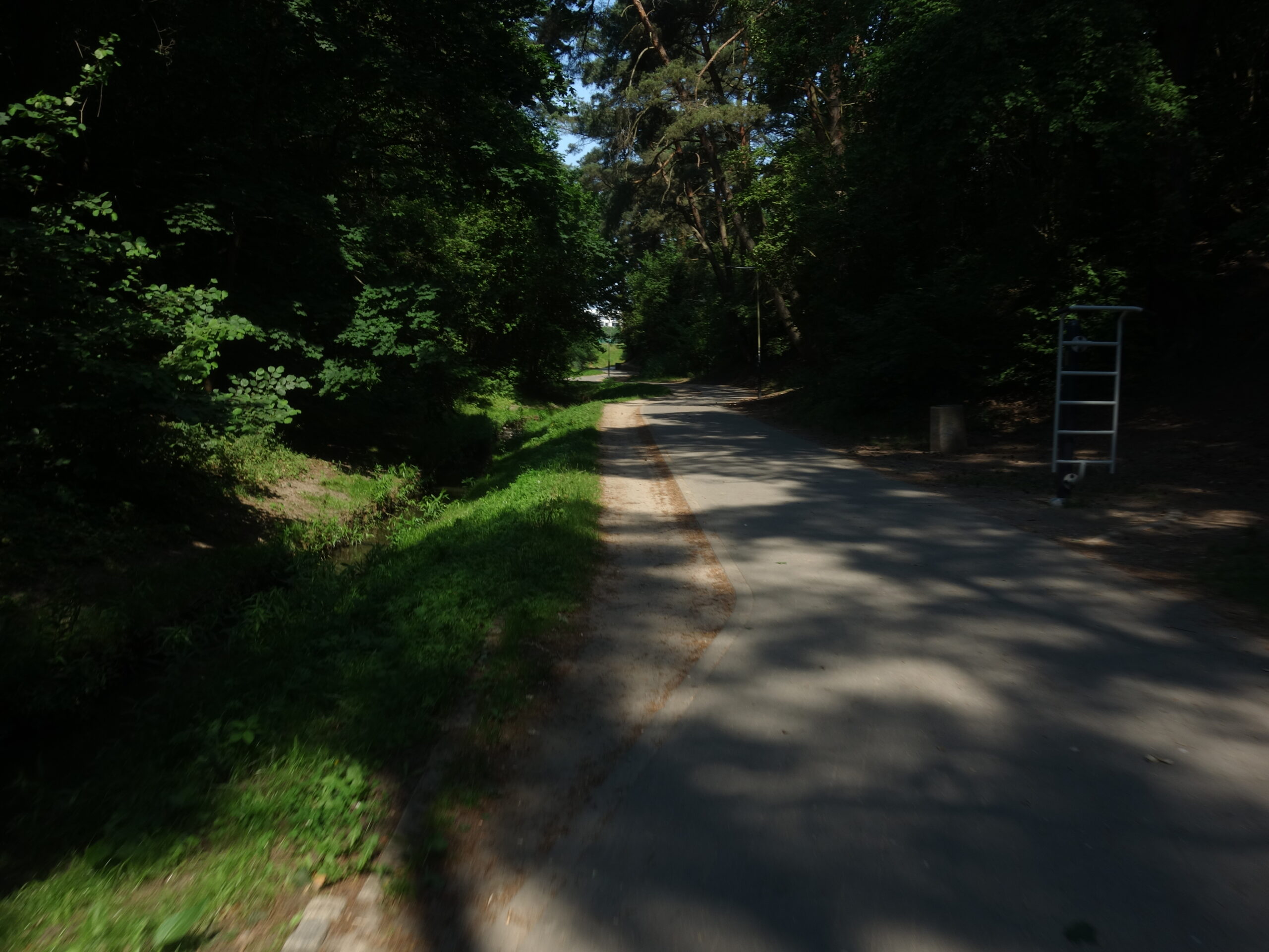Mym celem w ramach tej przejażdżki było osiedle Urzeka i teren rekreacyjny, który urządzono w pobliskim lasku, na skarpie ponad potokiem. Kładka zbudowana na skarpie wygląda bardzo ładnie, niemniej prowadzi donikąd, a poza tym, dolinka z potokiem są dość mocno zaniedbane. Mimo wszystko plus za ogarnięcie takiego miejsca i udostępnienie dla wszystkich chętnych.