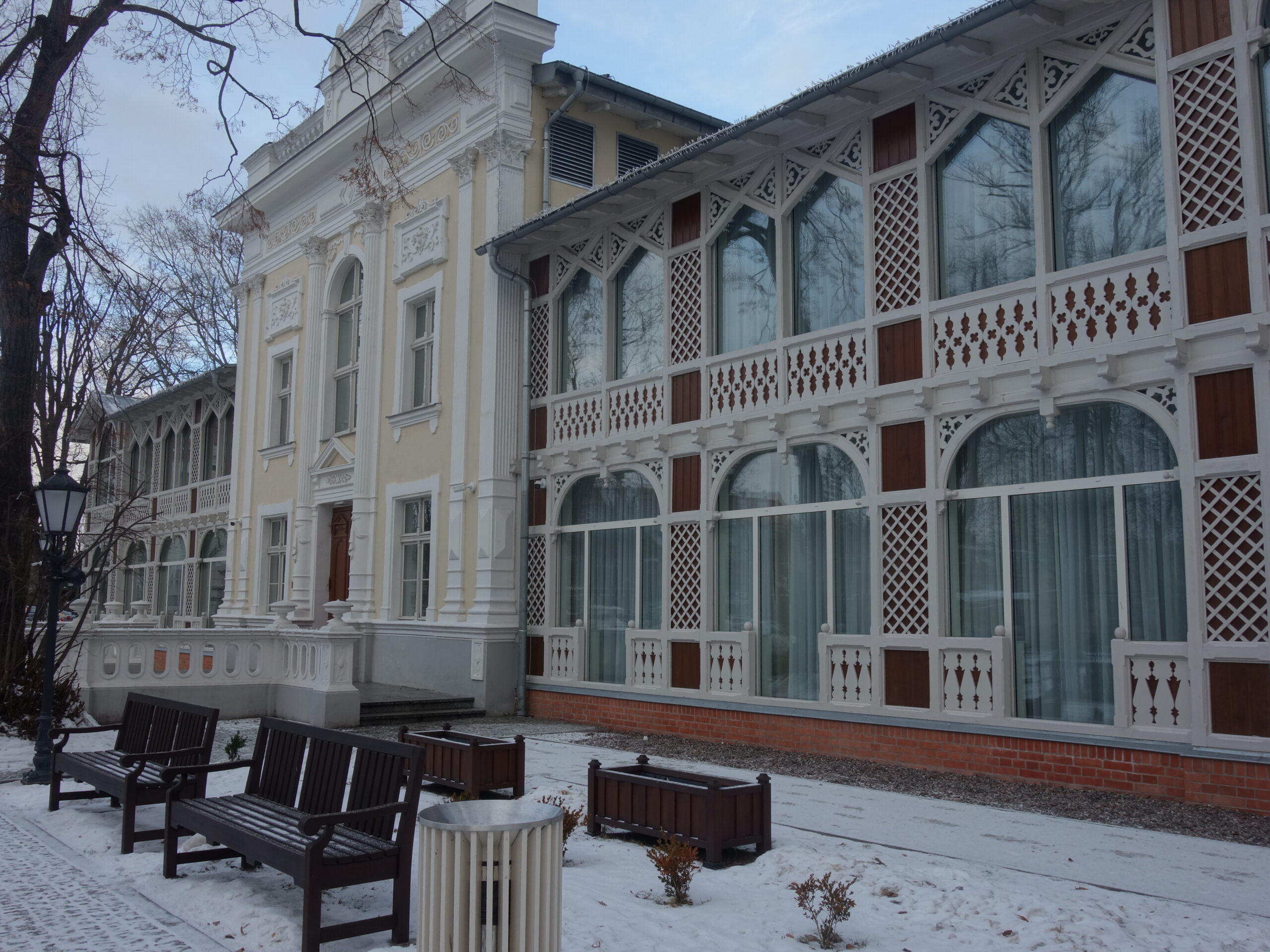 Park Oliwski zimą i wnętrze Katedry Oliwskiej