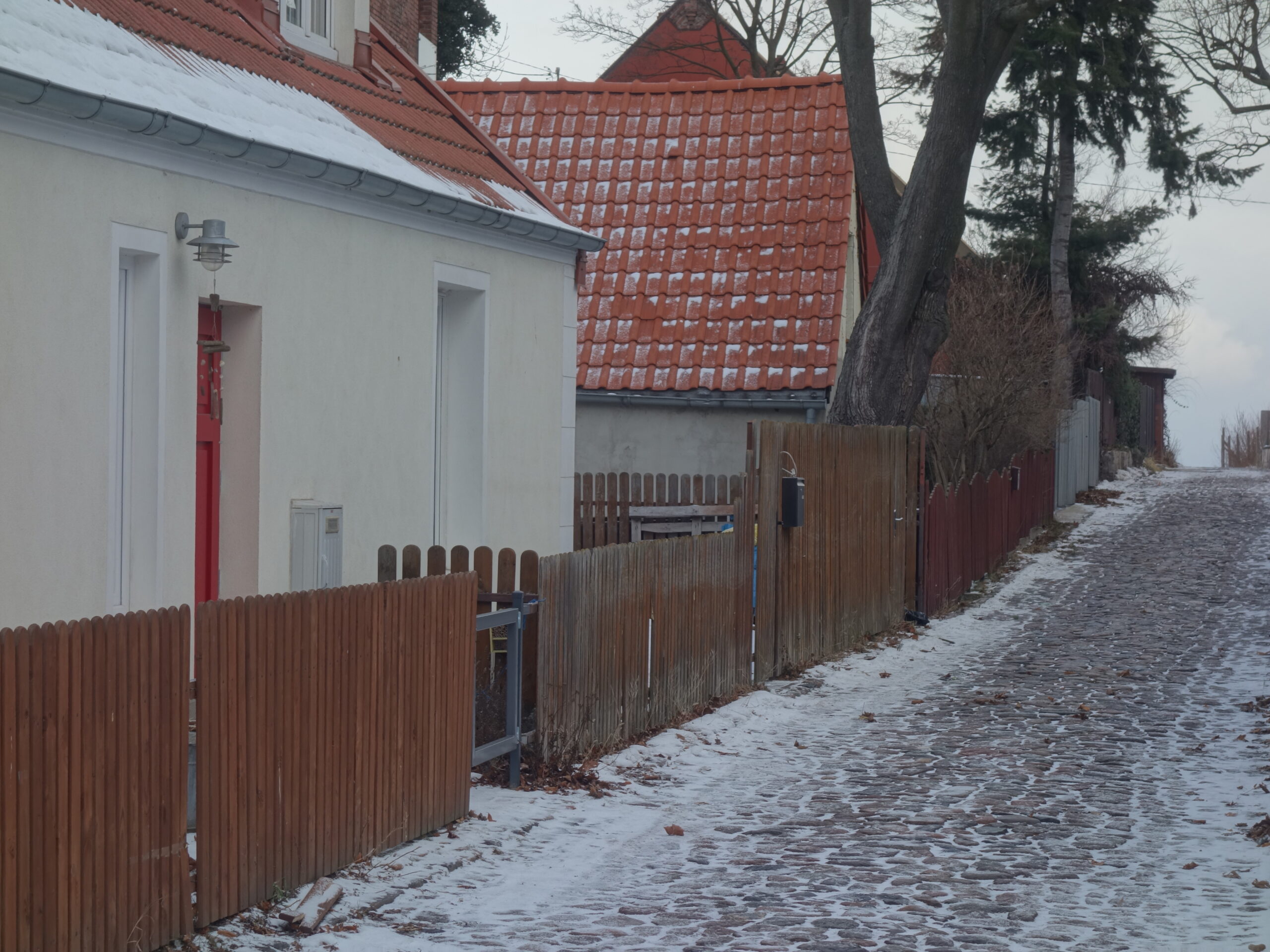 Ruszyłem ulicą Pułaskiego, a więc sercem starej części dzielnicy, cykając fotki ulicom i budynkom Wioski Rybackiej. Pokryty niczym cukrem pudrem bruk, czerwone dachy jakby lukrowane, a tle zaś gwałtowne, charakterne i dzikie morze.