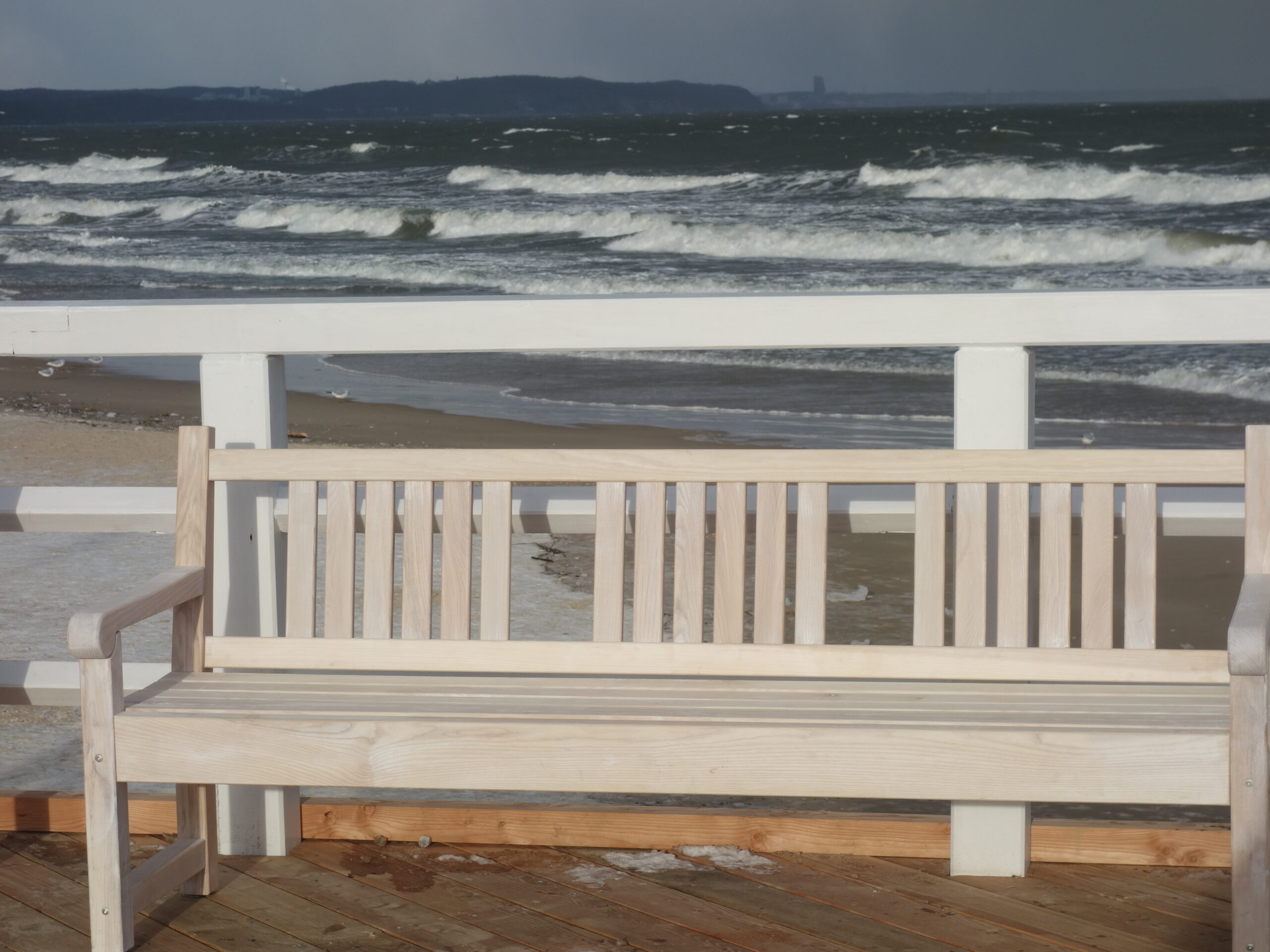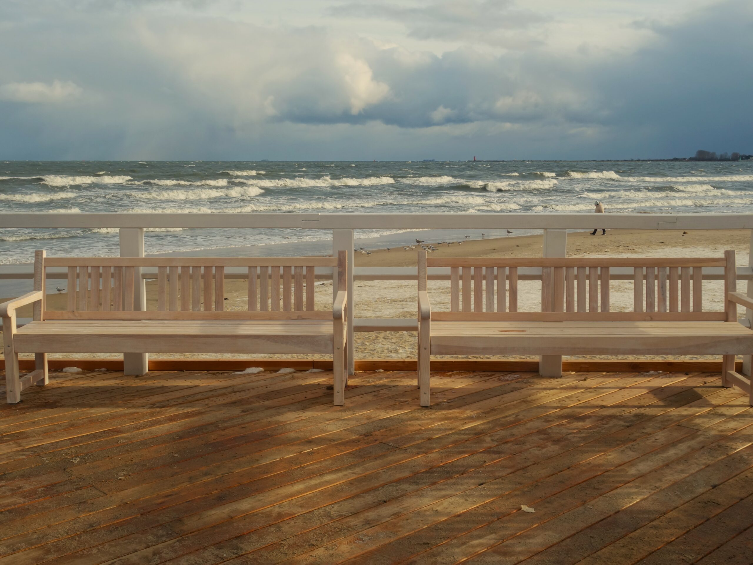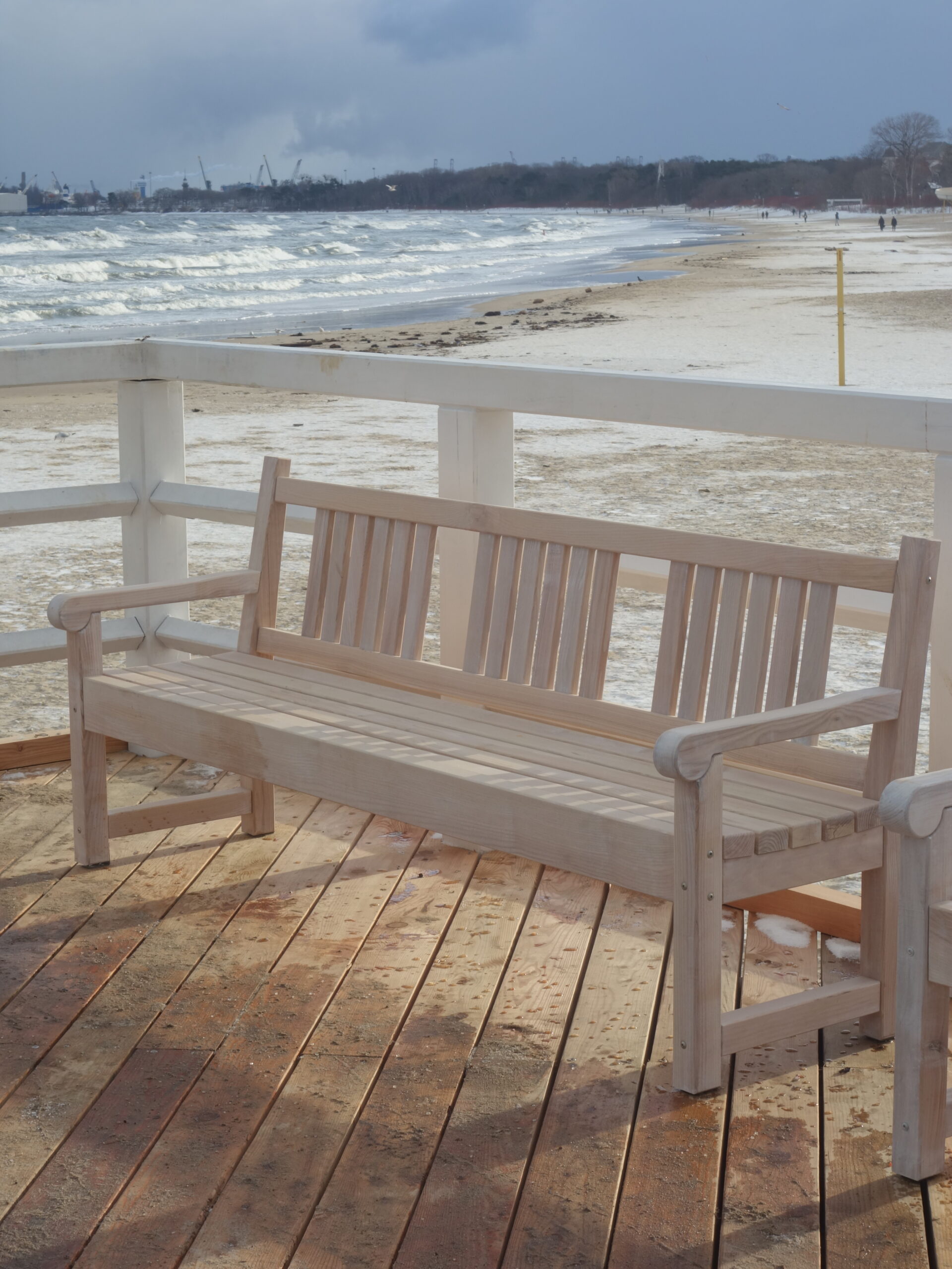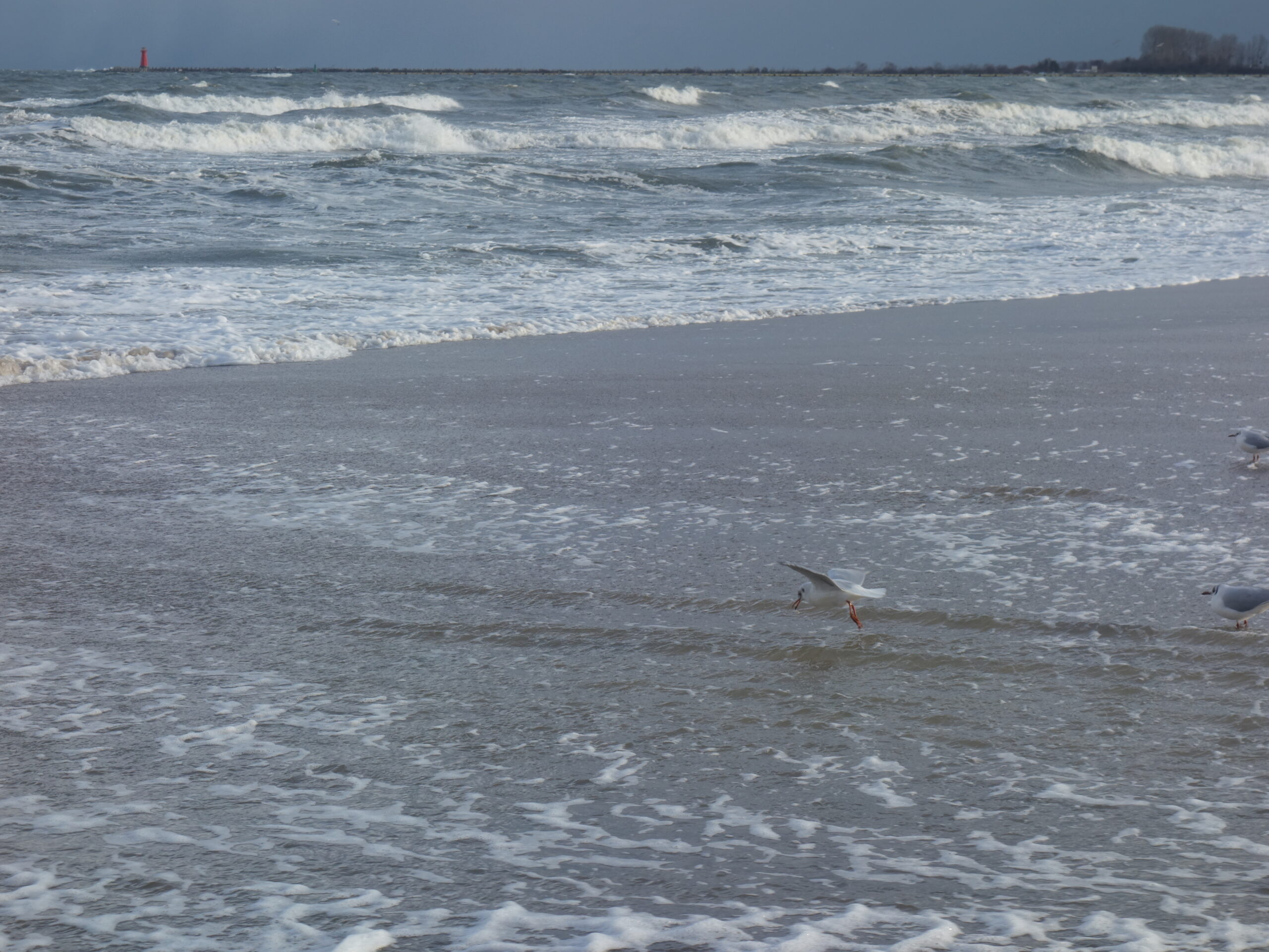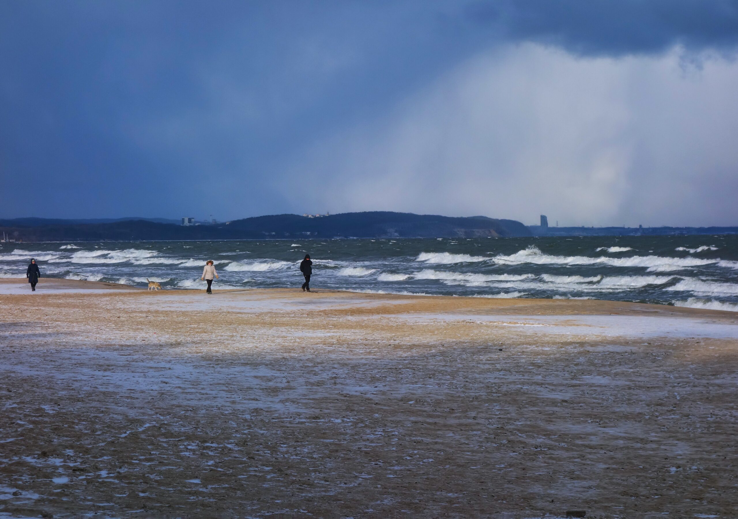 Doszedłem do jednego z wejść na plażę z miejsca się zachwyciłem! Przepiękne uczucie, być jednocześnie w dużym mieście, ale móc zderzyć się z nieokiełznaną naturą. Zakopana w piachu i śniegu ławka, fale bijące o brzeg, jedna za drugą, z całą mocą. Wiatr dawał się we znaki, zaczepiając tuptające plażą ptaki. Kilka chwil i poczułem, jak bardzo mi tego brakowało. Tego wiatru, tej przestrzeni, tego hałasu, tej siły, tego piękna.