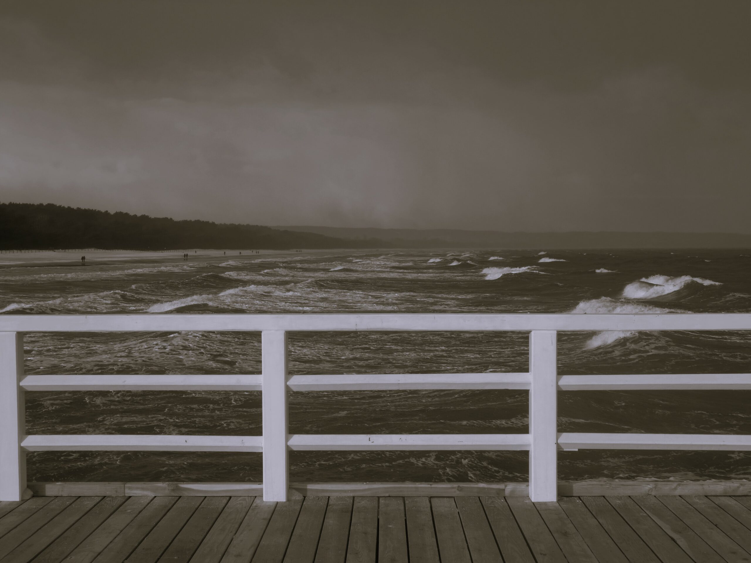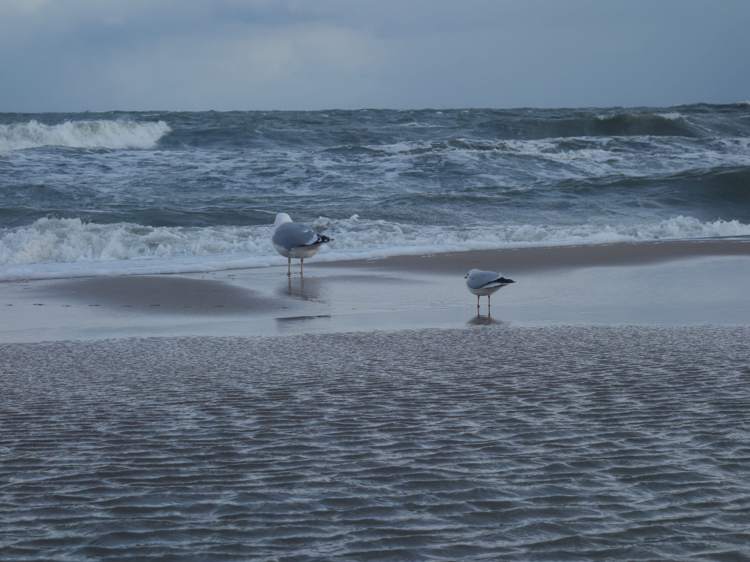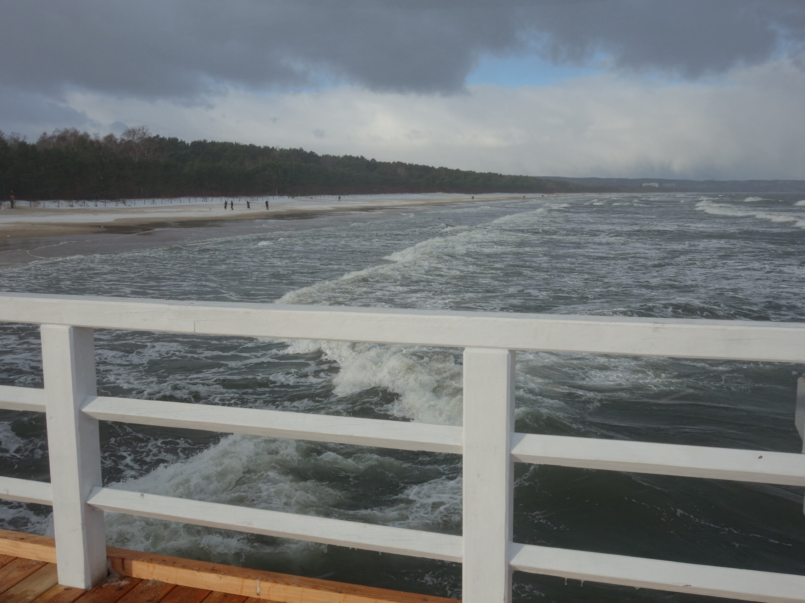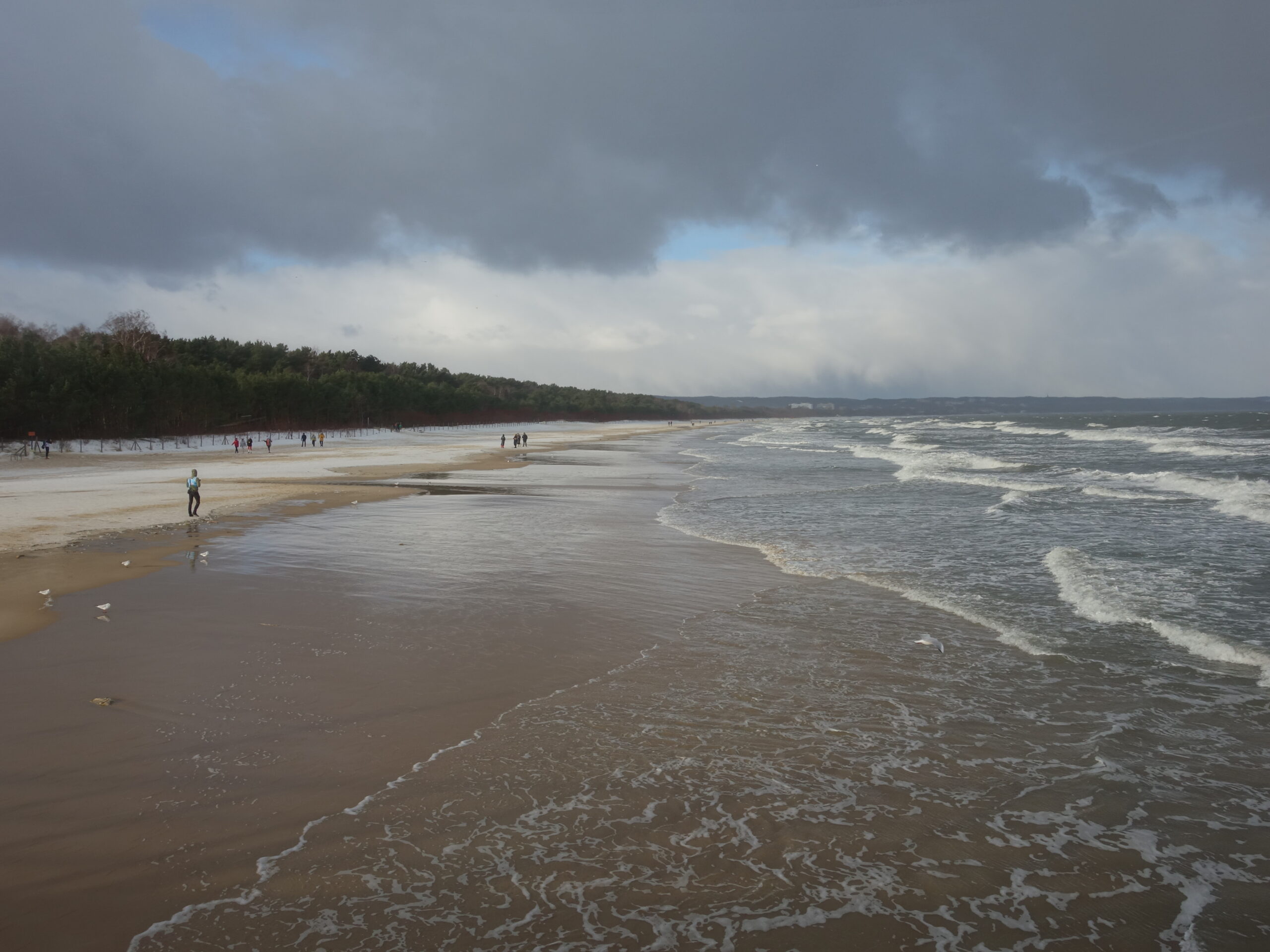 Zziębnięty, dalszą drogę nad morzem przebyłem promenadą. Tutaj, za wydmami i pasem zieleni, nie czuć było przeszywającego wiatru. Zaglądałem jeszcze kilka razy na plaże, podglądając spacerowiczów i podpatrując szalejące fale.