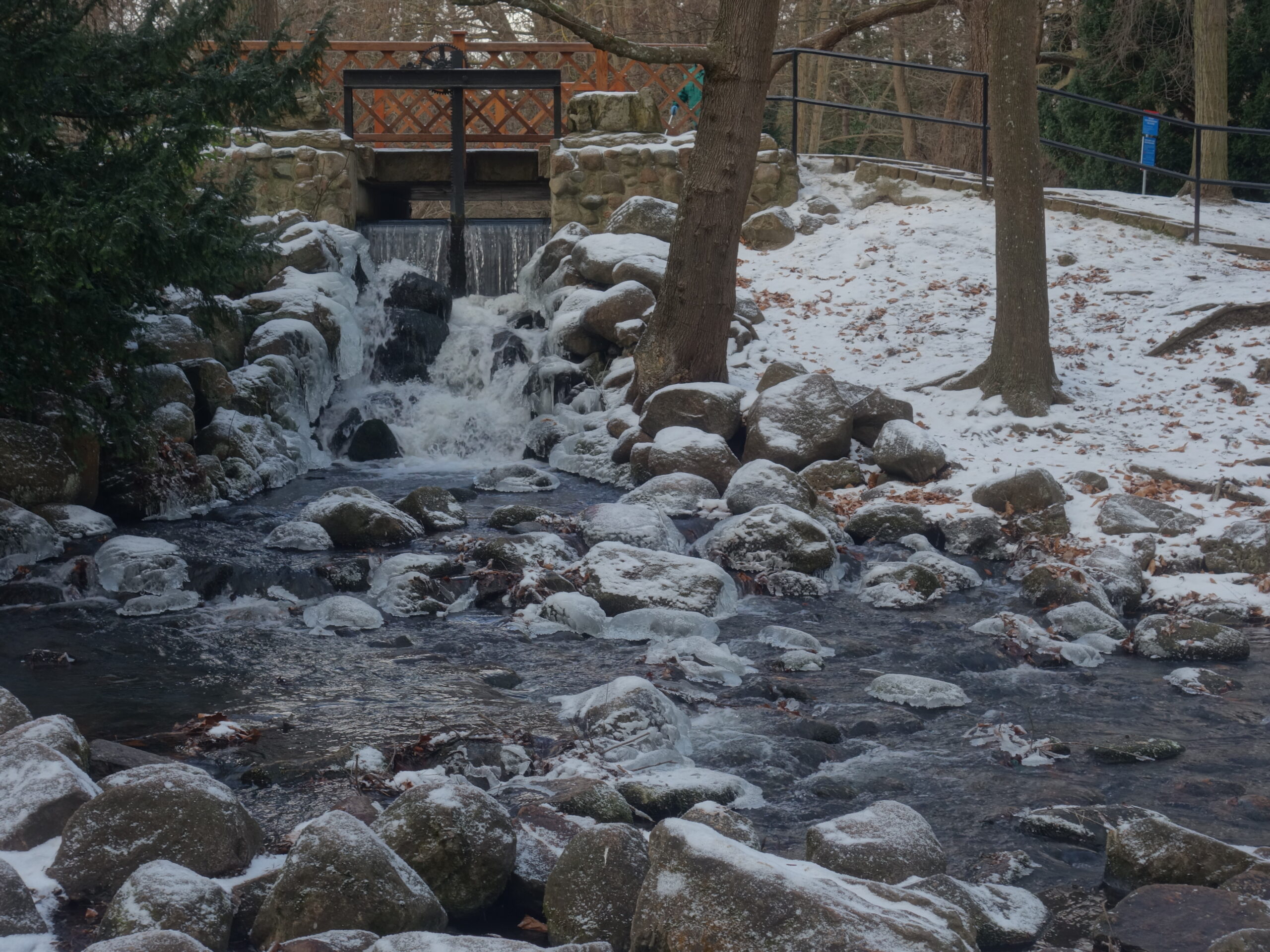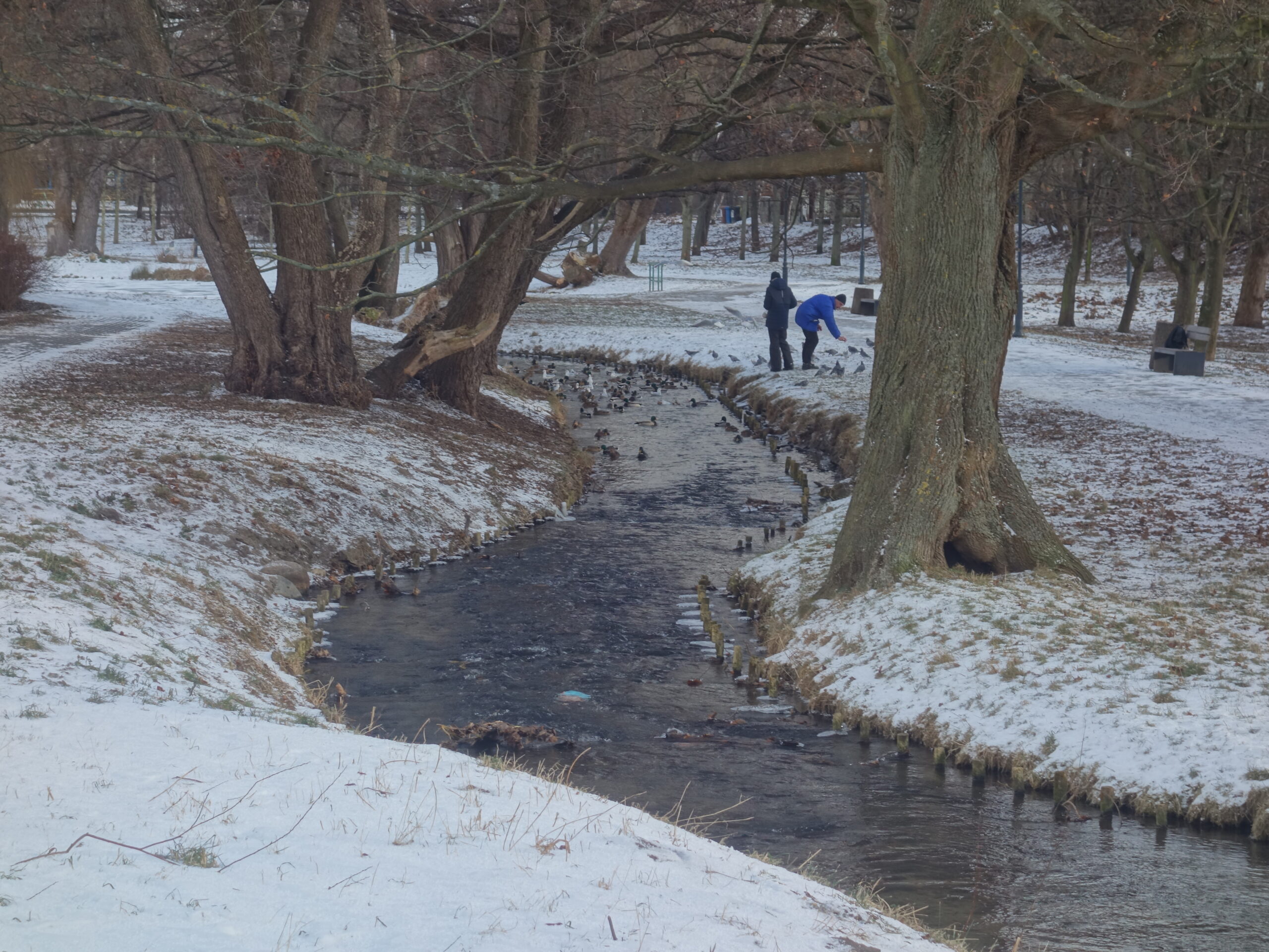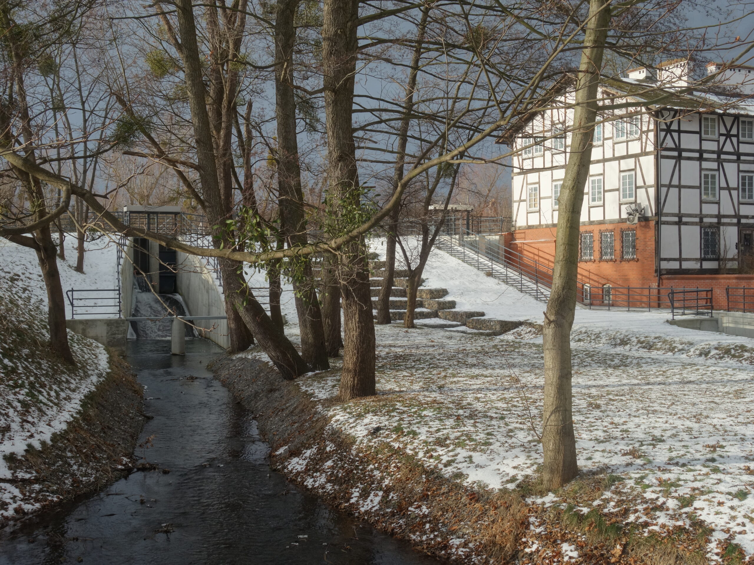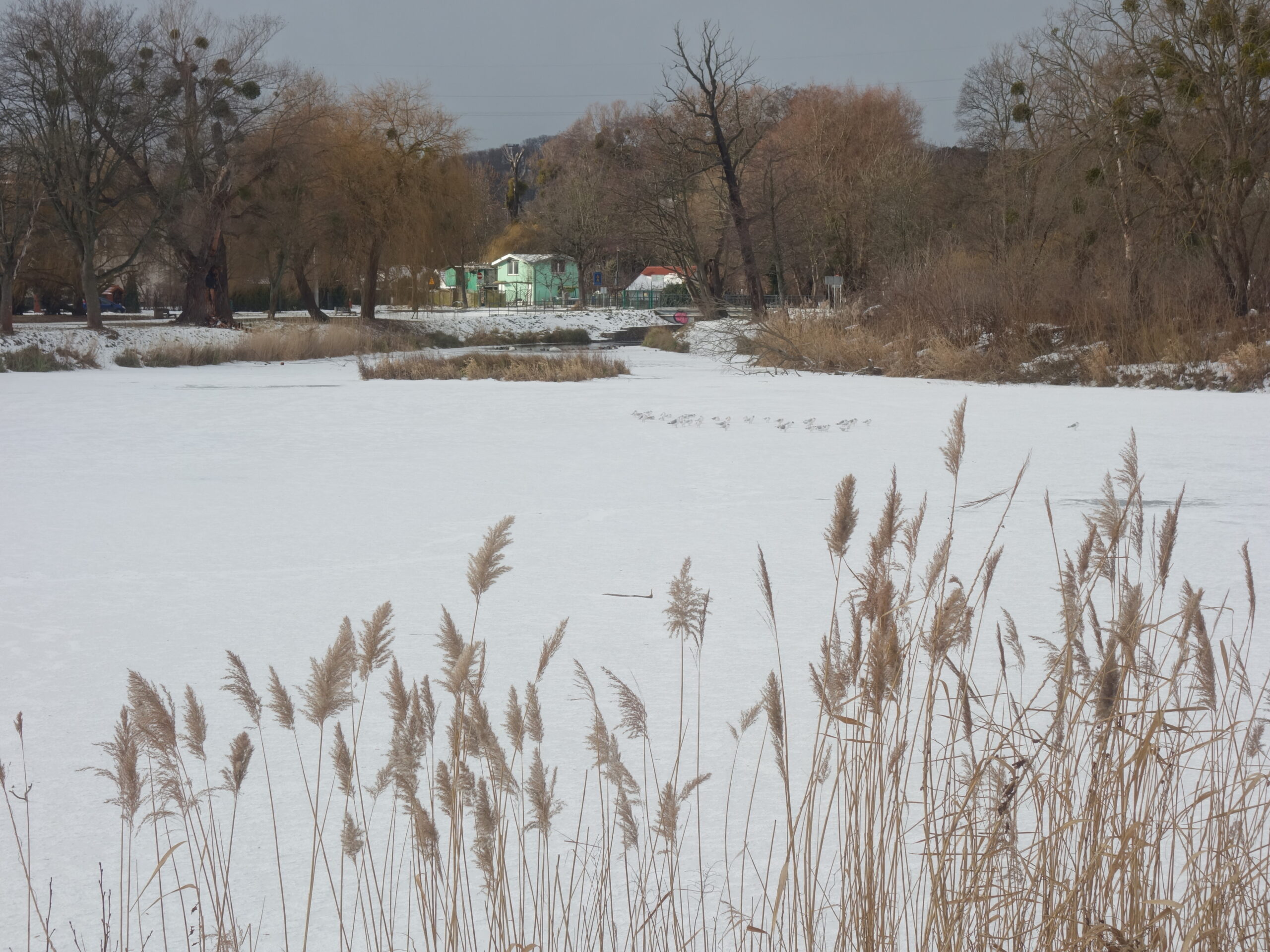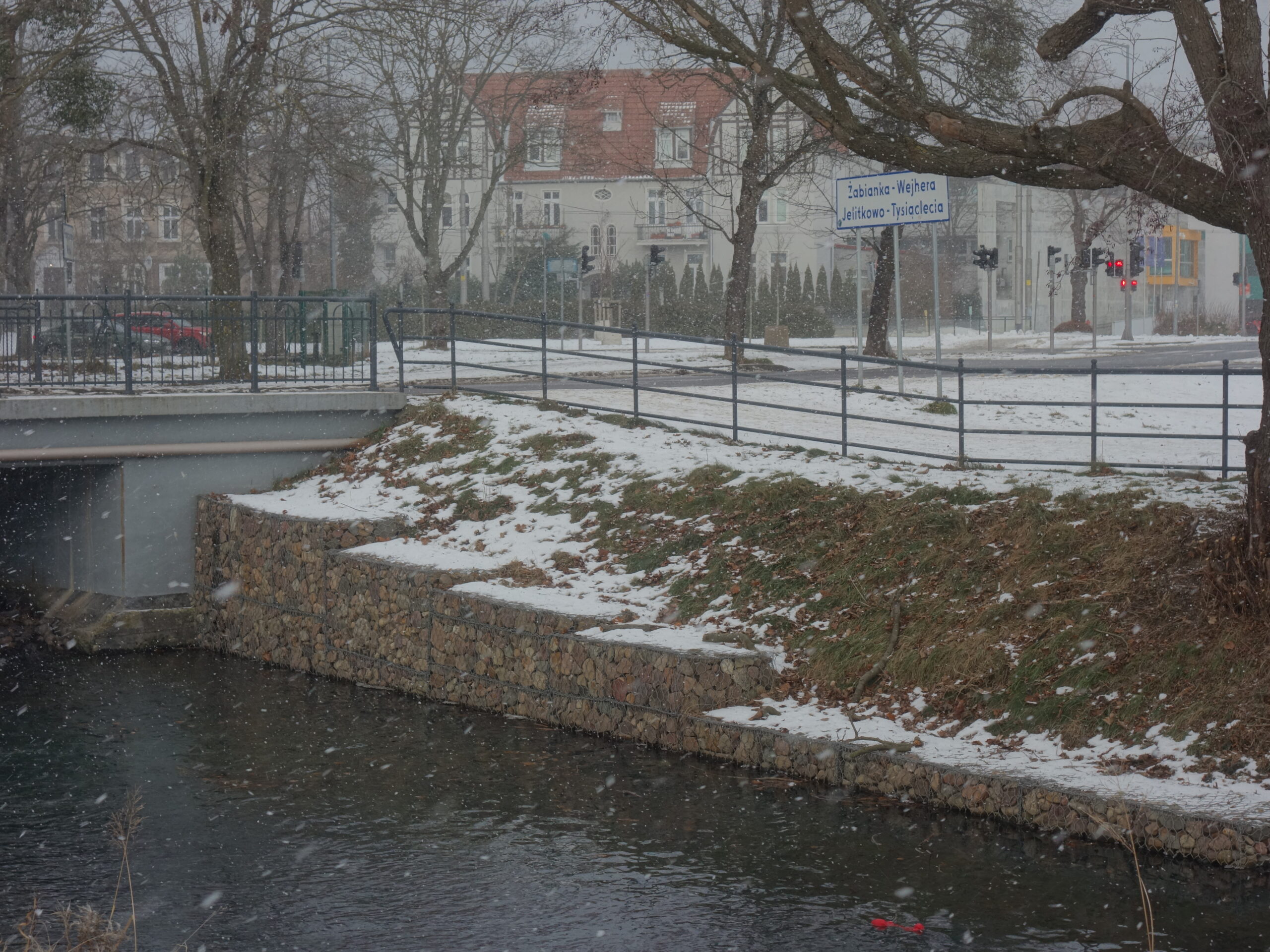 Dalej szedłem wzdłuż Potoku Oliwskiego, mijając na trasie trzy zbiorniki retencyjne. Cały ów obszar między Żabianką a Przymorzem jest świetnym miejscem spacerów i rekreacji. Ponadto znaleźć tutaj można obiekty historyczne i miłe krajobrazy. Latem to miejsce jest przepiękne, ale i zimą prezentuje się zjawiskowo.