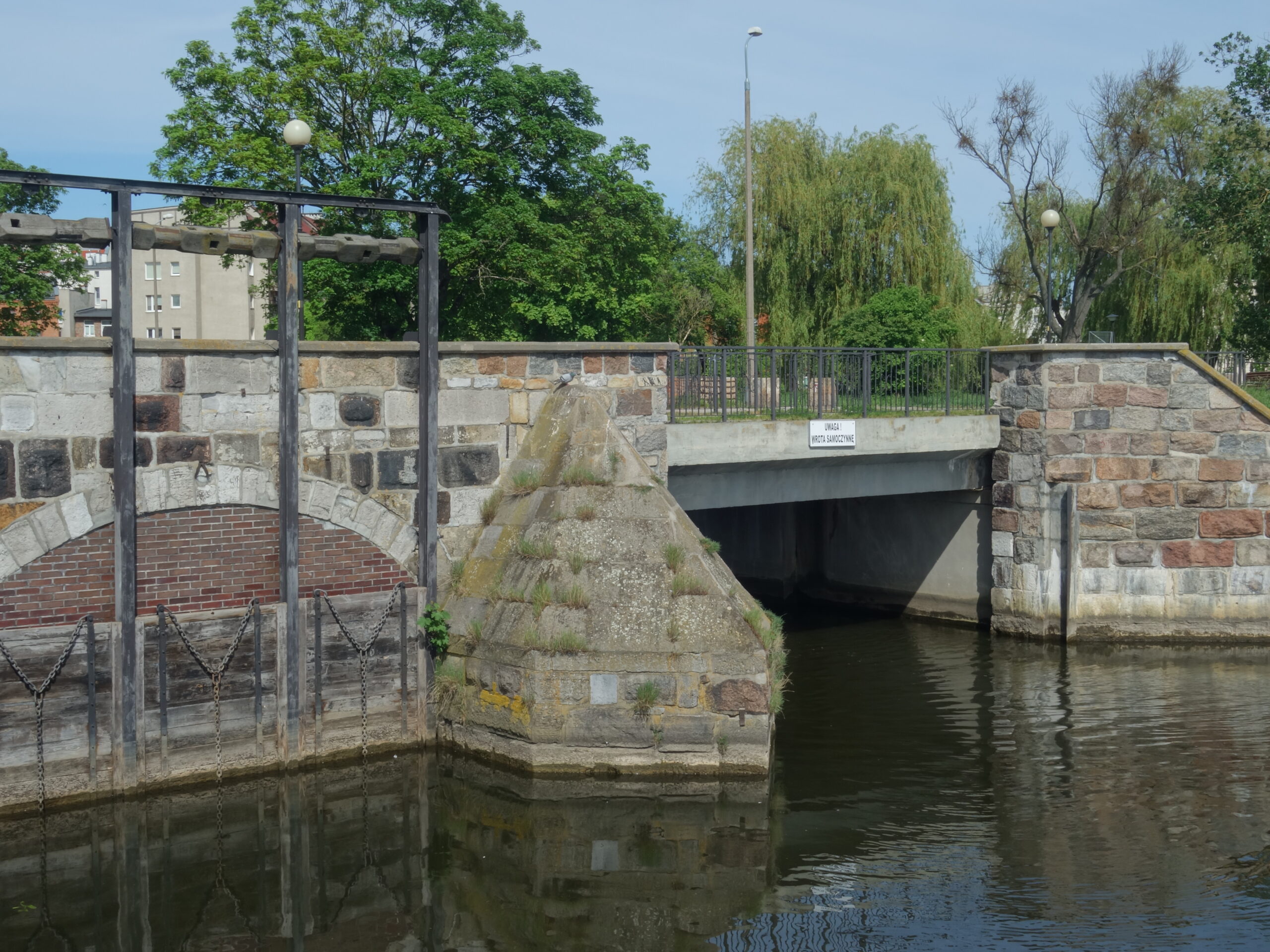 Najciekawszy fragment dopiero przez Wami! Otóż po chwili dopłyniecie do Kamiennej Śluzy, a więc XVII-wiecznego zabytku, który pełnił ważną rolę przy obronie miasta. Przepływając obok “dziewic” czyli kamiennych wieżyczek, zobaczycie Bastion Żubr (poprawnie Tur) – zachowany element nowożytnych fortyfikacji miasta.